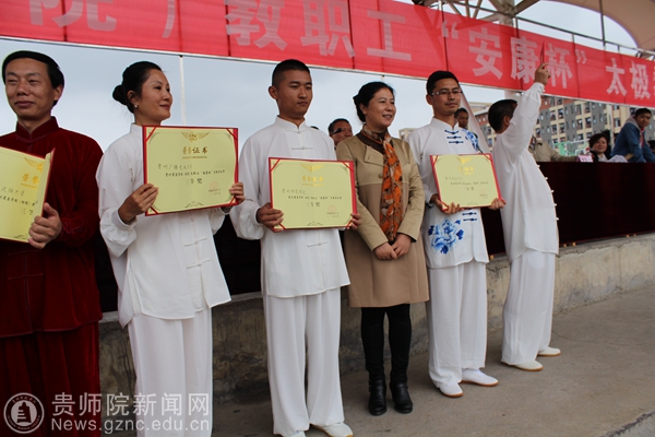 本网讯 10月21日上午,由省教育工会主办、贵阳中医学院承办的2016年贵州省直学校(附院)教职工“安康杯”太极拳比赛活动在贵阳中医学院体育场举行,来自省直学校(附院)共15支队伍参加了比赛。best365工会率队参加了本次比赛并获得三等奖(总成绩第六名)。