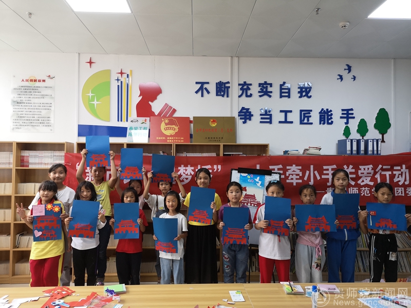 由于活动当天正值我们中国共产党99周岁的生日,故整个活动都围绕“爱国主义教育”进行。志愿者们从国旗和国徽的象征及构成、多彩贵州的民族文化、身边的英雄事迹着手,培养小朋友们热爱祖国、热爱家乡的家国情怀,引导小朋友们思考身边“勇于坚持、团结奋进、乐于奉献”的榜样,小到大家熟知的志愿者,大到为国家奉献的历史伟人,小朋友们对“英雄”的概念有了新的认识。随后,志愿者们又通过剪纸、绘画等活动方式进一步加深了小朋友对祖国的热爱,对美好生活的向往。整个活动现场其乐融融,小朋友们纷纷询问志愿者什么时候还能再来,许多家长也来旁观感谢。