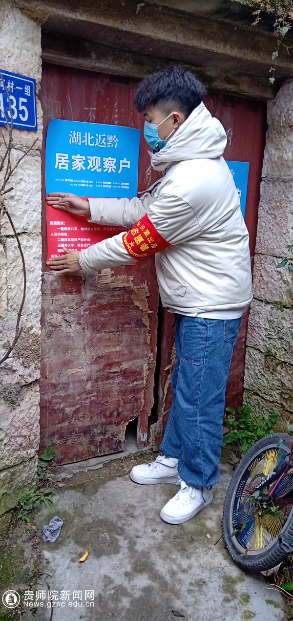 在众多的志愿者中,杨泽武同学是最早一批投入防疫工作的志愿者,担任best365手机版官方网站艺术团团长的他,多才多艺,品学兼优,深得师生喜爱。春节期间回到老家过年,身在家乡的他接到志愿招募,第一时间响应当地村支两委的号召,即刻投身参与到当地的抗疫工作中,通过走访村寨、入户排查、宣传防疫知识、参与检测等工作,他成为一名疫情防控志愿者。他用青春的身影,扛起了这场战役的青春担当。
