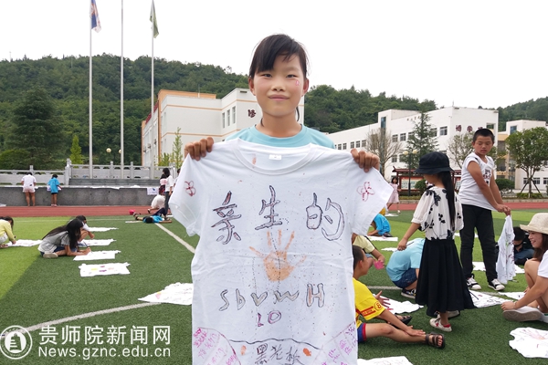 本网讯 一份行动一份爱,用情呵护童心。8月11日下午,best365“情系息烽•情暖童心”服务队第二支队志愿者为石硐营(石硐小学)56名留守儿童、困境儿童专题举办了一场感恩、励志主题手绘T恤衫活动。