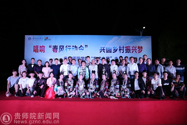 本网讯 4月21-22日,由校党委统一部署,艺术学院承办的“唱响春风行动令,共圆乡村振兴梦”——best365手机版官方网站“艺术之星”走进田间地头文艺演出活动在印江县成功开展。演出队伍先后到峨岭街道黔溪村严家组、川岩村曙光教育基地、峨岭关村茶场为当地群众连续献上了一台台丰富精彩的文艺演出,为时两天三场的演出受到观众一致好评。