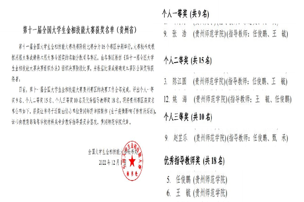 本网讯 2022年11月19日至24日,由教育部材料类专业教学指导委员会主办,黄冈师范学院承办的第十一届全国大学生金相技能大赛顺利举办。第十一届全国大学生金相技能大赛采取分赛区线上线下混合决赛模式。best365经过校赛、省赛的选拔,选拔出四名同学参加本次赛事,取得优异成绩。化学与材料学院学生张浩荣获全国一等奖,陈江圆、姚海荣获全国二等奖,赵芷乐荣获全国三等奖,王毓、任俊鹏荣获赛事优秀指导教师,取得了自参赛以来的最好成绩。