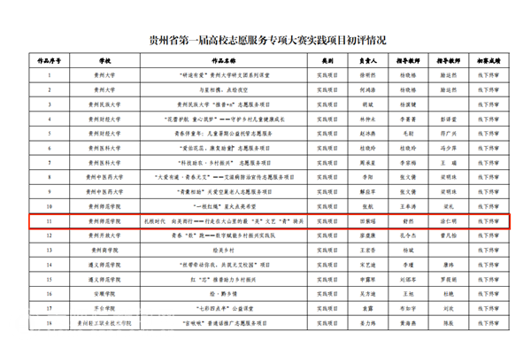 《扎根时代向美而行——行走在大山里的最“美”文艺“青”骑兵》入围贵州省第一届高校志愿服务专项大赛实践项目线下终审