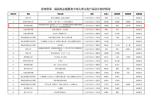 喜报:我院1作品获贵州省第一届高校志愿服务专项大赛文化产品设计(视频类)金奖、1项目入围实践项目线下终审