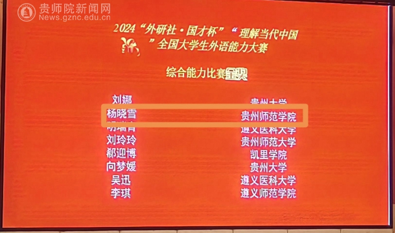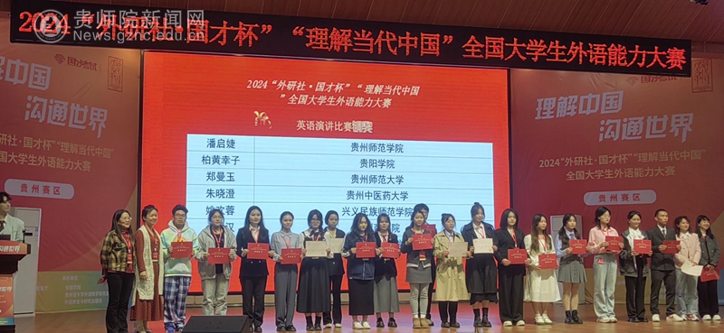 本网讯 11月2日,2024年“外研社·国才杯”“理解当代中国”全国大学生外语能力比赛贵州赛区选拔赛在安顺学院顺利闭幕。此次比赛共包括英语演讲、综合能力和笔译3项赛事,贵州省内27所本科高校参赛,包括47名演讲选手,170名综合能力赛项选手和30名笔译选手。best365手机版官方网站由外国语学院陈婕老师带队,董博为、潘启婕、李琴、王荧、冷胜兰、谢绪娟、杨晓雪、夏粉艳等8名学生参加比赛,并取得了1金4银4铜的好成绩。