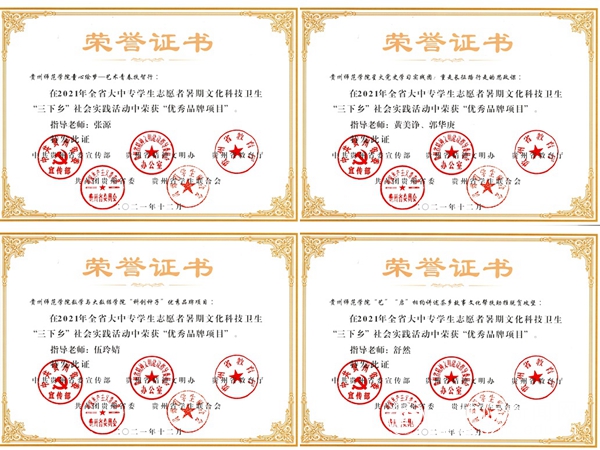 best365在2021年贵州省大中专学生志愿者暑期文化科技卫生“三下乡”社会实践活动中喜获佳绩