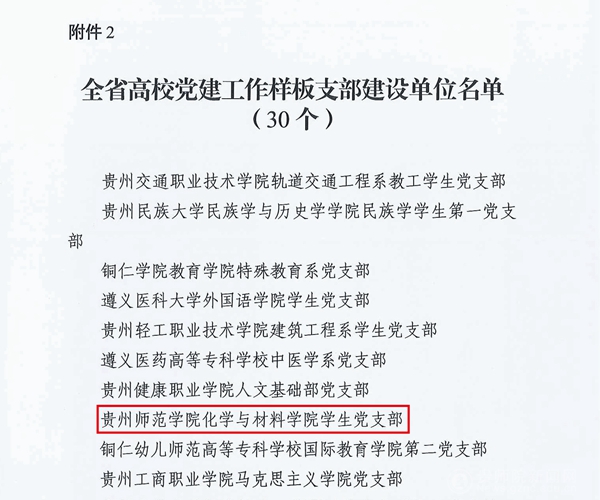 近日,省委教育工委公布了“全省高校党建示范点”和“全省高校党建‘双带头人’”培育工程建设单位名单,best3653个基层党组织入选全省“五级书记抓党建”工作“五个一批”工程项目建设单位,其中,best365音乐舞蹈学院党委入选全省高校党建工作标杆院系建设单位,化学与材料学院学生党支部入选全省高校党建工作样板支部建设单位,商学院教师党支部入选全省高校“双带头人”教师党支部书记工作室建设单位,推动best365党建特色品牌在数量、质量、影响力等方面取得进一步突破。
