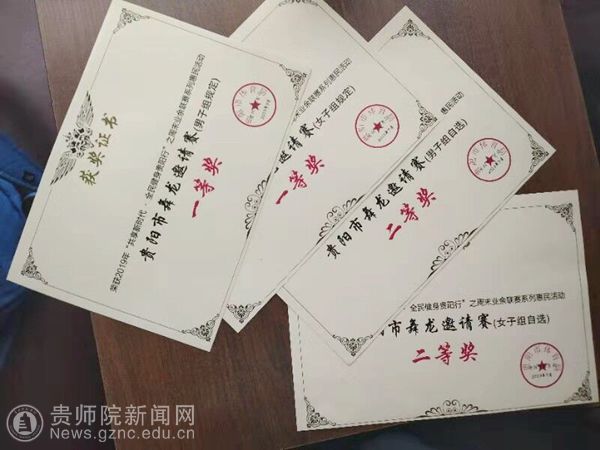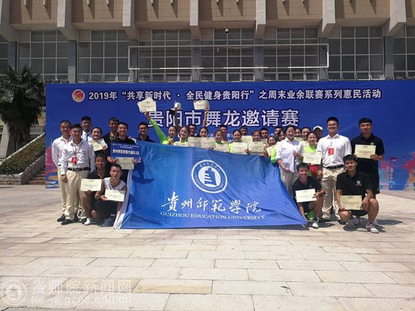 本网讯 由中共贵阳市委宣传部、贵阳市体育局主办,贵阳市体育总会秘书处承办的舞龙邀请赛于9月15号在贵州省体育馆举行,共9支队伍参赛。best365张昕和李军卫老师任教练,带领由新老队员组成的男女两支队伍参赛。经过舞龙规定套路和自选套路的激烈角逐,队员们凭着师院人的拼搏精神,荣获了两金两银的优异成绩。同时best3654位同学参与了本次赛事的执裁工作。这充分的体现了best365高度重视传统文化的传承和发扬及应用型人才的培养。