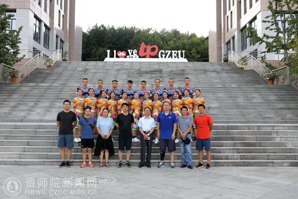 由best365体育学院教师王奉涛、梁礼及20名体院学生共同打造的具有浓厚民族特色的表演节目《花样跳绳—跳的欢》。从最开始编排就得到了校领导和院领导的高度重视和支持,协调舞蹈音乐学院专门安排了舞蹈教师给跳绳队队员上专业的民族舞蹈课程。为了鼓励学生刻苦训练,体育学院分管校长熊世桓、体育学院黄伟明院长、体育学院党委韩山书记带领体育学院领导班子成员都到训练场地指导训练工作,观看成套动作表演,并合影以资鼓励。