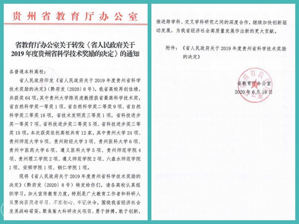 本网讯 近日,省人民政府对2019年度为我省科学技术进步、经济社会发展作出突出贡献的科学技术人员和组织给予奖励,以激励全省科学技术工作者继续发扬追求真理、拼搏创新、勇攀高峰的科学精神,深入实施创新驱动发展战略,着力攻克关键核心技术,破解创新发展难题,推动我省经济社会高质量发展。