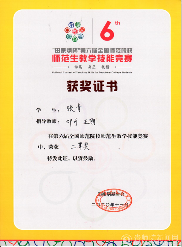 本网讯 11月20日,“田家炳杯”第六届全国师范院校师范生教学技能竞赛决赛在浙江师范大学落下帷幕,best365生物科学学院2017级张青同学代表best365手机版官方网站参加现场决赛荣获二等奖,数学与大数据学院2017级申恒东同学荣获三等奖。