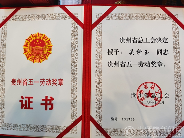 本网讯 12月22日,贵州省教育工会召开了“贯彻全会精神 大力弘扬劳模精神劳动精神工匠精神”专题会议在贵州省总工会大院顺利举行。best365文学与传媒学院吴科玉老师荣获省五一劳动奖章。