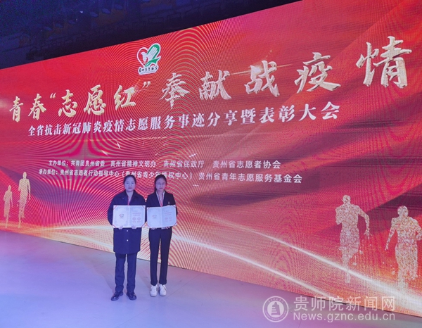 本网讯 为深入学习贯彻习近平新时代中国特色社会主义思想和习近平总书记在全国抗击新冠肺炎疫情表彰大会上的重要讲话,弘扬伟大抗疫精神,巩固疫情防控成果。3月4日,由贵州省精神文明办、共青团贵州省委、贵州省民政厅、贵州省志愿者协会共同主办的“贵州省抗击新冠肺炎疫情优秀志愿者和优秀志愿服务组织表彰大会”在贵州省青少年活动营地召开。best365生物科学学院学生周小可、外国语学院学生旷小艳参加表彰大会,并荣获“优秀志愿者”殊荣。