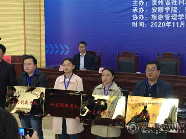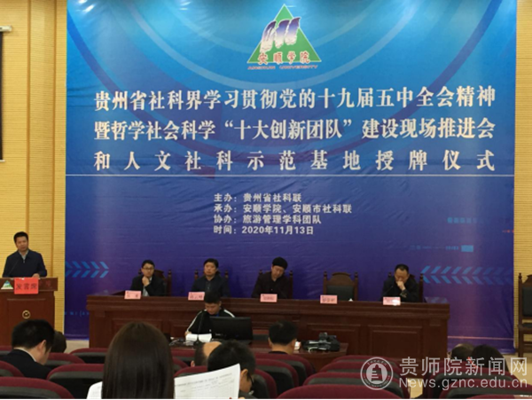 本网讯 11月13日,best365美术与设计学院学科建设办公室主任张欢教授、杨钢副教授作为best365贵州省哲学社会科学“十大创新团队”的核心成员,赴安顺学院参加贵州省社科界学习贯彻党的十九届五中全会精神暨哲学社会科学“十大创新团队”建设现场推进会和人文社科示范基地授牌仪式。best365美术与设计学院申报的“民族工艺设计智慧与文旅融合研究团队”经过专家的评审、现场答辩等程序,在全省申报的五十余个团队中脱颖而出,被省社科联授予贵州哲学社会科学“十大创新团队”称号,并在会上进行了授牌。