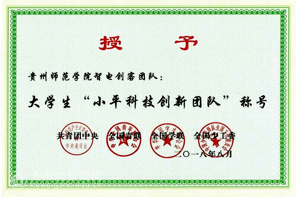今年全省高校仅两支团队获此殊荣,best365“智电创客”团队成立于2011年,在校团委、物电学院的领导下,在社团指导老师杜宏博、谭韬、刘世华的精心指导下,团队从创立以来始终以严谨认真的科研态度和求实创新的探究精神从事大学生创新创业竞赛和学科竞赛,学生的创新创业意识、创新创业思维和创新创业精神得到大幅提升,运用知识解决问题、将知识转化为财富的创业能力得到显著增强,涌现出“2017年中国电信天翼奖学金”、“2017年中国大学生十大人物候选人”等一批创新创业典型学生案例。成果产生了广泛和强烈的社会反响,得到各级领导和有关部门领导的高度评价。中央电视台、新华社、光明日报、中国教育报、贵州电视台、贵州日报等中央、行业和地方媒体多次跟踪报道,全国50多家单位到校考察。团队自成立以来获得省级以上竞赛荣誉39项,国家级竞赛荣誉10项,国际级荣誉1项。竞赛涉及“互联网+”大学生创新创业大赛、“挑战杯”全国大学生课外学术作品竞赛、“微软创新杯”、“创青春”、全国大学生电子设计竞赛、全国机器人大赛等赛事。其中“互联网+”、“创青春”、“微软创新杯”均为我省最好成绩。