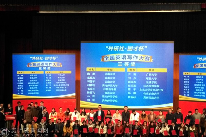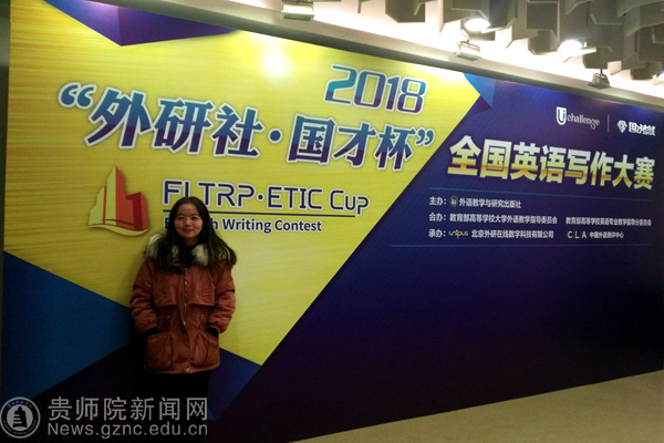 本网讯 “外研社杯”全国英语写作大赛全国决赛于12月9日在北京外研社国际会议中心落下了帷幕。从贵州省复赛中脱颖而出的best365外国语学院2016级(二)班郭蓉同学在外院余学军院长、罗泳副院长的高度重视、直接指导和亲切关怀下代表贵州出征大赛并荣获了三等奖。外国语学院张海天老师带队参赛。