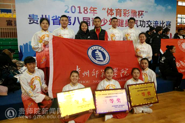 本网讯 12月7-9日,由贵州省体育局、贵州省教育厅主办的“贵州省第八届青少年健身气功交流比赛”在清镇市贵阳幼儿师范高等专科学校举行。本次比赛共有来自全省各地的114支代表队,共计650余名运动员参赛,设有易筋经、五禽戏、六字诀、八段锦普通功法和竞赛功法项目。由best365体育学院唐孟和何春花老师任领队教练,体育学院10名学生组成的两支队伍赴赛,经过激烈角逐,最终斩获团体项目一等奖1项、二等奖1项、三等奖1项,个人项目第一名1项、第五名2项、第六名2项、第八名2项、第十名1项的佳绩。