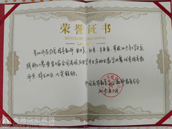 该大赛始于2013年,是代表中国师范院校历史学专业本科生教学技能水平的全国性权威赛事。这是我院历史学本科生第一次在三位老师指导下参加的全国性教学技能比赛中获奖。今年3月份开学接到比赛通知后,学院领导高度重视,安排专业指导教师组织团队精心选拔和训练学生。同时邀请了校内外的李环玲、刘相、谢振华、司霖霞、付宏、凌永忠和任宗仪等老师进行指导点拨。比赛前,指导教师们对三位学生进行了系统训练;现场抽到比赛题目以后,三位带队教师在有限时间内,根据题目内容与参赛学生实际情况,进行内容深度加工与设计,对学生进行了精准指导,每个环节力求完美,每句话务求表达准确。三位学生在整个过程中积极参与、认真刻苦。本次活动在一定程度上展现了我院历史学专业学生的培养质量、教师的教学水平,也反映了我院教学管理团队在日常教学管理和组织工作上的付出与成效。