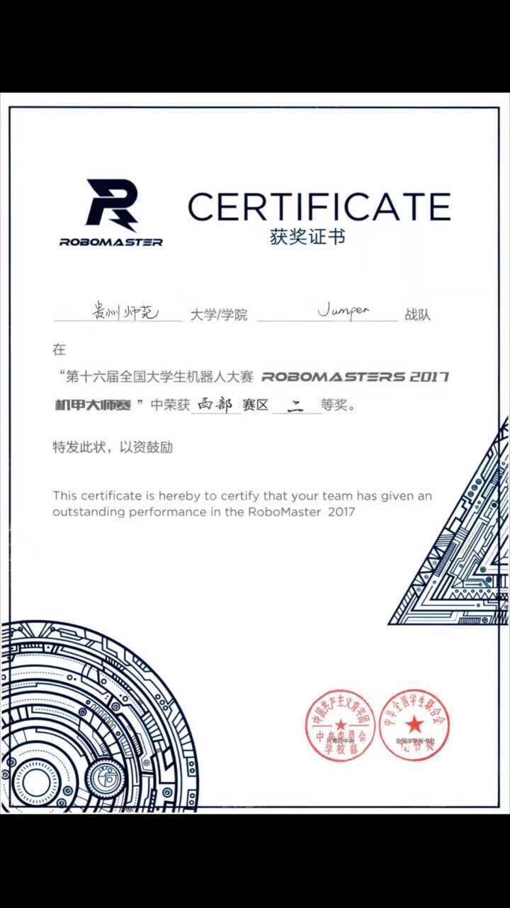 best365团委高度重视本次比赛,组织了来自智电大创中心三名指导教师组成的教练团,并在全校选拔了来自物电学院、地理与旅游学院、体育学院组成了15人战队。此次西部赛区的全国赛名额争夺激烈异常,它强调对抗、作战和技术,比赛双方都尽全力击溃对手。每场比赛,参赛队伍可布置7台机器人:包括一名英雄机器人、一名基地机器人、一名空中机器人、一名工程机器人和三名步兵机器人。选手操控机器人发射大小两种弹丸攻击敌方。在7分钟的比赛时间结束后,基地被毁或血量较低的一方将输掉比赛。在众多高校中,其中就有连续两年的总决赛冠军的电子科技大学,作为种子队伍的西安交通大学、兰州理工大学以及拥有多届参赛经验的四川大学、钦州学院等。best365席源枫、陶清雨、熊文等9名同学组成的Jumper战队,在指导老师邓睿、莫章洁的带领下,与电子科技大学、四川大学、西安交通大学、重庆大学等22支高校队伍同台竞技,经过激烈的角逐,获得了西部赛区二等奖,也赢得了全国总决赛踢馆赛的资格。