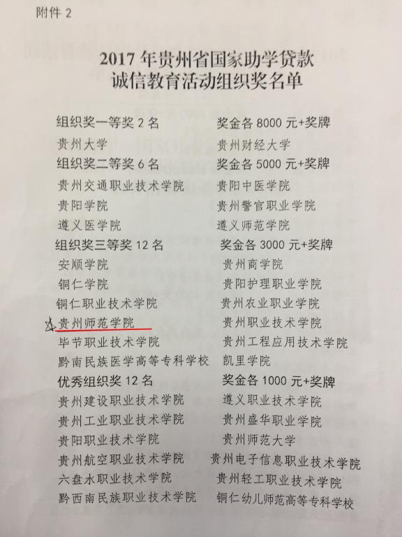 近日,由省教育厅和国家开发银行贵州省分行联合举办,“资助十年伴我成长践行诚信筑梦未来”贵州2017年国家助学贷款诚信教育活动大赛落下帷幕