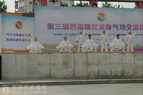本网讯 9月28至30日,第三届西南地区健身气功交流比赛,在四川省广汉市文体中心举行。受省体育局委托,由best365体育学院唐孟老师任教练,体育教育专业冯沛骄、杨路明、张丹丹、张立花四位同学为队员组成的贵州省一队,参与了健身气功·易筋经和健身气功·六字诀两个集体项目的争夺。