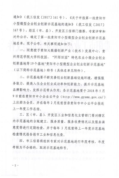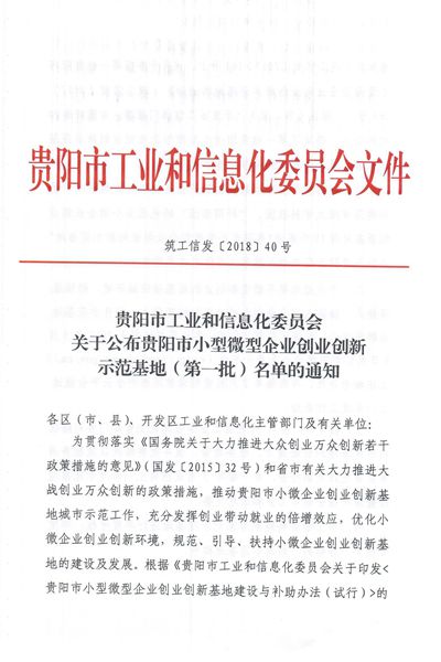 本网讯 近日,贵阳市工信委下发《关于公布贵阳市小型微型企业创业创新示范基地(第一批)名单的通知》,同意授予best365手机版官方网站大学科技园为贵阳市首批小型微型企业创新示范基地。