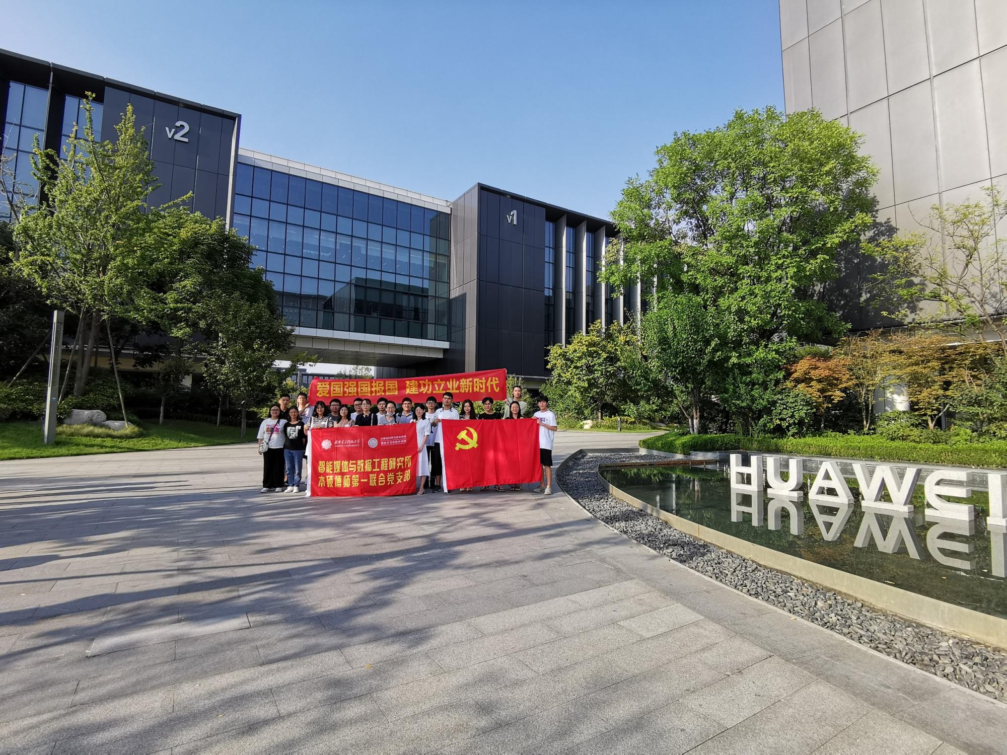 (通讯员 彭延国)为了更好地推动党建与业务相结合,充分发挥党建育人作用,发掘优秀民族企业育人资源,2020年8月26日下午,在华为云(CloudBU)数据库服务部,学院副院长苗启广、党委副书记张莹莹的共同策划、推动下,beat365官方网站智能媒体与数据工程研究所本硕博师第一联合党支部走进华为,开展“爱国强国报国建功立业新时代”主题党日活动。由支部书记彭延国、研究生辅导员何敏之带队,支部部分党员及学院博硕士研究生,和本科生共计20余人来到华为西研所参观、交流。华为专家从国家战略需求角度,解读了国产数据库的发展现状与前景,分析了国家对数据库系统领域人才的迫切需求,帮助同学们进一步明确了使命和奋斗目标。