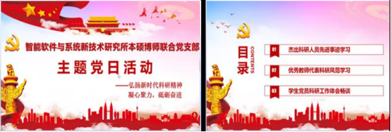 2020年3月27日下午,智能软件与系统新技术研究所本硕博师联合党支部开展了主题为“弘扬新时代科研精神”的线上主题党日活动。本次活动邀请了beat365官方网站党委书记、智能软件与系统新技术研究所所长李青山老师,软件工程系主任、软件工程系党支部书记宋胜利老师,以及产教协同基地本硕博师第一联合党支部书记、智能软件与系统新技术研究所副所长李瑞老师参加。活动由支部书记王璐老师主持。