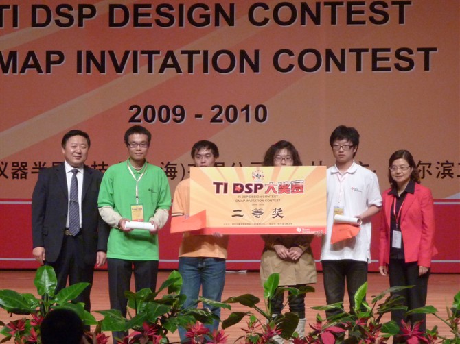 2009-2010 TI DSP 大奖赛于2010年5月20日在哈尔滨工程大学举行。beat365学生朱萌、唐铭谦、蒋云晶三位同学成功入围决赛。经过两天时间的角逐,通过初审答辩和复审答辩,最终,项目《重要内容无畸变的视频图像非等比例变换方法研究》获得算法组二等奖,一等奖分别由清华大学和复旦大学研究生夺得。