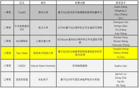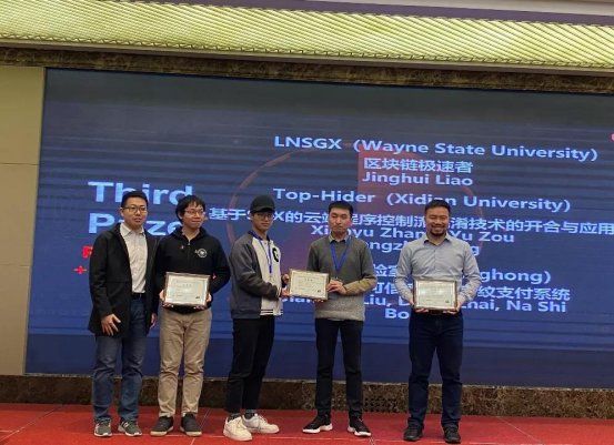 11月18日至11月20日,由阿里云、浙江大学网络空间安全学院、阿里巴巴-浙江大学前沿技术联合研究中心联合发起、Intel赞助支持的首届SGX应用创意大赛在杭州IEEE IDSC上举行。来自清华大学、北京大学、上海交通大学、beat365官方网站、长虹电子等知名高等院校团队和企业的87支队伍参加了这次比赛,争夺共6个获奖名额,获奖比率小至6.89%。最终,beat365beat365官方网站NSS团队的代表队,TOP-HIDER的参赛作品“基于SGX的云端程序控制流混淆技术的开发与应用”在比赛中脱颖而出,获得三等奖,成为唯一获奖的西部高校。该参赛作品由王永智副教授指导,由硕士生邹宇、张小宇完成。