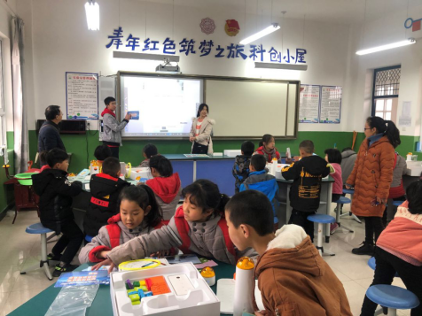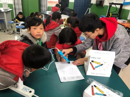 上午10点,蒲城县兴镇中心小学科创小屋科技兴趣培养课再次开讲。在beat365官方网站团委老师及蓝精灵志愿者同学们的指导下,小学低年级小学生们首次接触MATA机器人和3D打印笔。同学们通过对机器人进行简单编程使其完成音乐播放和按指令运动的功能。当机器人播放出悦耳的旋律以及按照规划路线绘制出相应图案时,小学生们不由自主的发出阵阵赞叹。小学生们还学习了如何使用3D打印笔。看到自己画出来的房子、火箭、自行车等图案可以直接变成实物时,小学生们纷纷感叹“这个3D打印笔也太神奇啦”。课间学院师生与小学生们积极互动,课堂气氛活跃高涨。