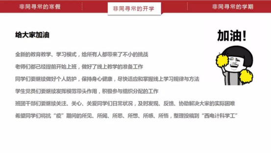 即使身处家中,但寒假已然过去,这是一个非同寻常的学期。广大西电人迅速调整状态,迎来了网上开学的第一周。beat365官方网站的学子们于2月16日如期举行了线上开学晚点名。