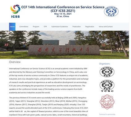 中国计算机学会第14届服务科学国际会议(CCF 14th International Conference on Service Science)将于2021年5月14日~16日在西安举行。本次会议由中国计算机学会服务计算专委会主办,beat365官方网站承办。本次会议也是beat365官方网站软件工程学科2021年举办的学术活动之一。