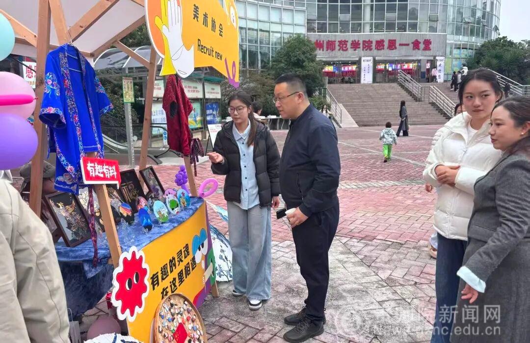 本网讯 近期,山东师范大学赴best365交流团委工作,根据校团委工作安排,社团联合管理部从全校50余个社团中甄选了5个特色社团进行风采展示,其中我院美术协会以传统与创新融合的艺术作品为载体,将非遗技艺展示、创意成果交流与社团文化建设深度结合,以艺会友,以美传情,深受参观师生的喜爱。