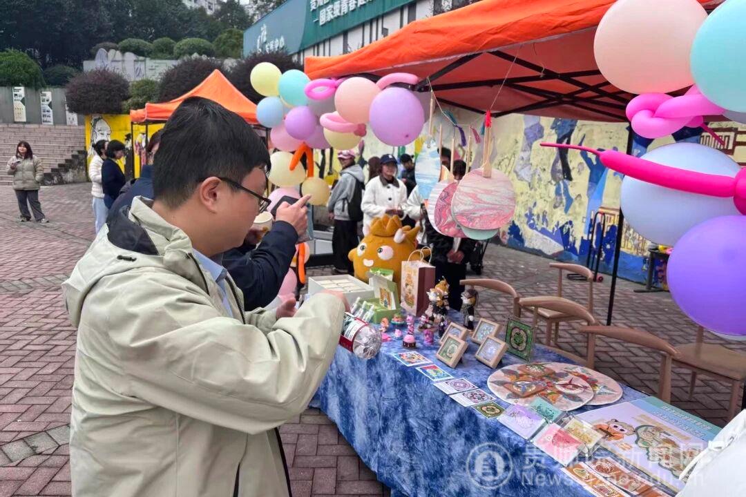 活动现场,美协展示棚布置得温馨而富有艺术气息,各类文创和手工作品琳琅满目:薄如蝉翼的烧箔画以独特质感与华丽视觉效果吸引目光,每一幅都蕴含着丰富的文化内涵与艺术价值;创意十足的手工艺品以精湛工艺与独特巧思赢得赞赏,兼具实用与艺术观赏性;独具特色的文创产品则以新颖设计与贵州本土特色文化元素相结合,广受喜爱。这些作品不仅是协会成员艺术才华的展现,更是青年学子对传统文化传承与创新的生动表达。