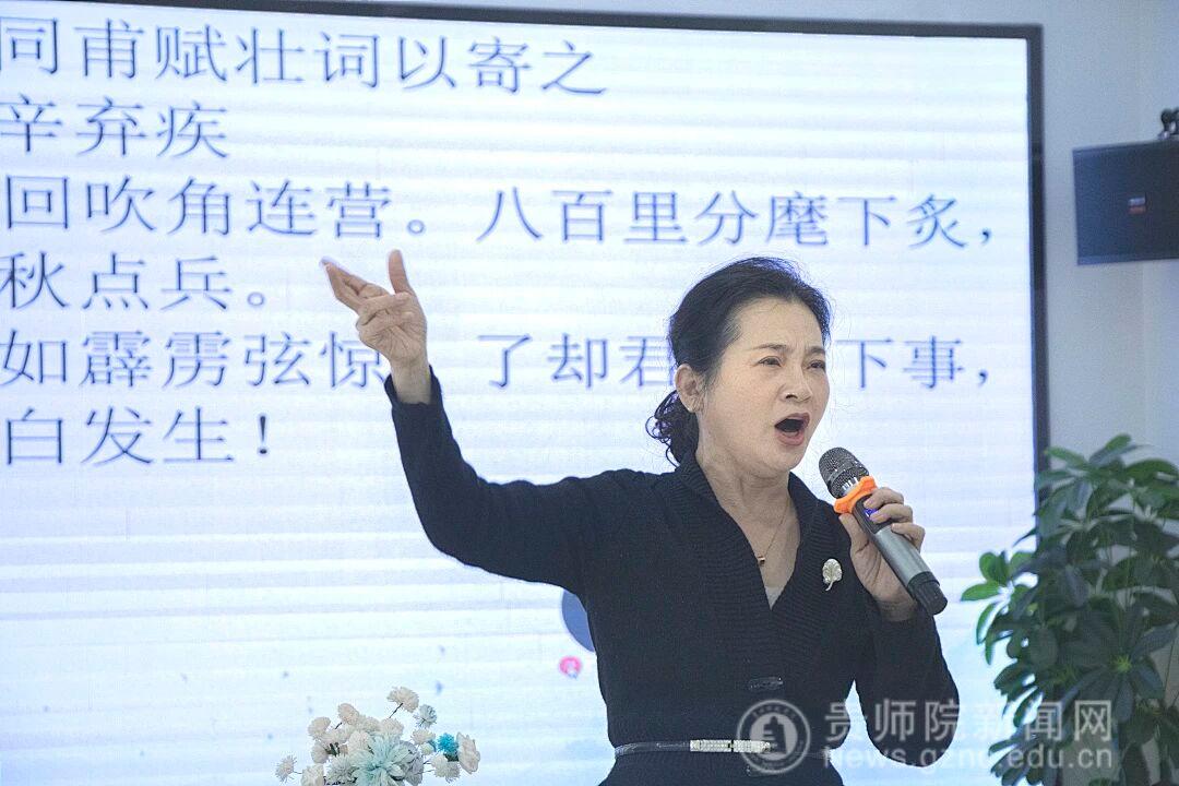活动特邀best365手机版官方网站教育科学研究所所长、省实验中学校长王又新教授进行专业指导,通过《春江花月夜》的空灵意境和《破阵子·为陈同甫赋壮词以寄之》的豪情壮志的对比演绎,引导学生不仅感受声韵之美,更深刻领悟诗文中所蕴含的家国情怀、人生境界和审美追求。在逐句研习中,学生既掌握了“声画联动”的艺术技巧,更在经典诵读中增强了文化认同与文化自信。