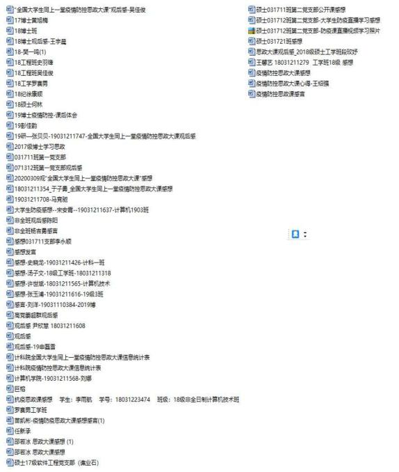本科17级计算机科学与技术专业0108班班长史越超通过腾讯课堂组织了主题班会,全班62名同学在线上的“云”相聚,共同观看思政课。在班长的组织下,同学们结合课程学习内容对党中央关于疫情防控的决策部署、身边防疫抗疫一线的感人故事等展开了讨论。班长史越超表示:“通过本次班会学习,同学们明确了作为大学生在这场疫情中的责任与担当,表示要身体力行,积极参与到防疫抗疫中,相信在不久后我们一定能取得战斗的胜利!”