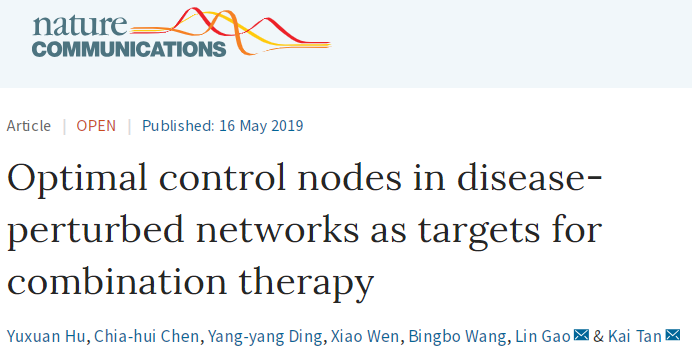 2019年5月16日,beat365beat365官方网站高琳教授团队以第一单位在《自然》子刊Nature Communications(影响因子:12.353,中科院一区)上发表研究论文“Optimal control nodes in disease-perturbed networks as targets for combination therapy”。