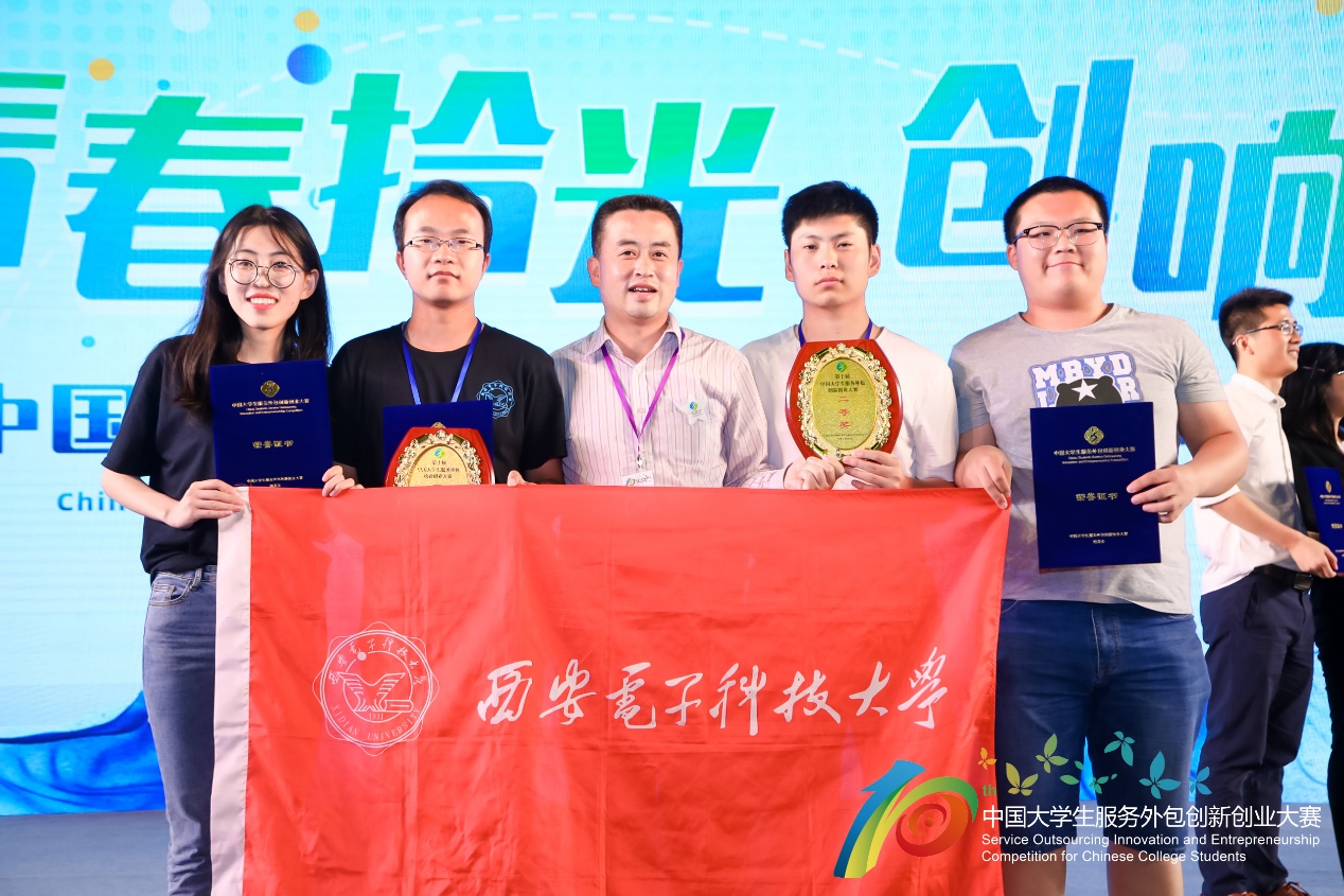 (通讯员 房慧娟)2019年5月24日,由教育部、商务部等联合主办的第十届中国大学生服务外包创新创业大赛(简称“服创大赛”)在江苏无锡落幕。beat365官方网站副校长石光明教授,beat365官方网站学院院长苗启广教授出席大赛颁奖典礼。西电的“掌控科技团队”与“竹园团队”分别荣获“创业实践类”一等奖和“企业命题类”二等奖。
