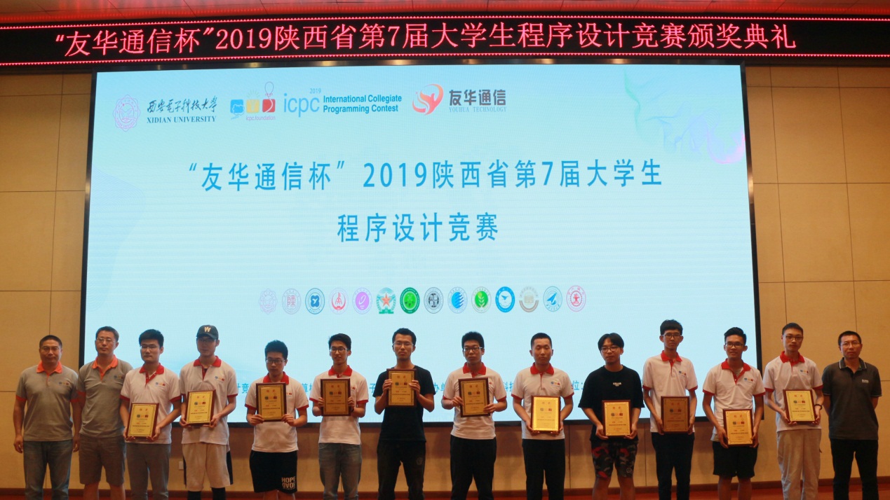(通讯员 张淑平 陈龙)6月2日, 由陕西省大学生程序设计竞赛组委会、陕西省计算机学会主办、beat365官方网站承办的“友华通信杯”陕西省第七届大学生程序设计竞赛在beat365官方网站南校区举行。beat365官方网站副校长石光明教授、beat365官方网站副院长苗启广教授和深圳市友华通信技术有限公司代表视察了比赛现场、出席闭幕式并为获奖队伍颁奖。