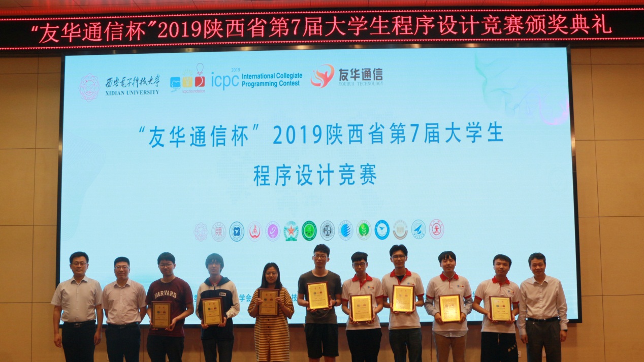 ACM-ICPC(Association for Computing Machinery -International Collegiate Programming Contest)是目前最具影响力的大学生计算机编程竞赛,旨在充分展示大学生创新能力、团队精神和在压力下编写程序、分析和解决问题的能力。陕西省第7届大学生程序设计竞赛(The 2019 ICPC China Shaanxi Provincial Programming Contest)是由ACM-ICPC亚洲区竞赛委员会授权的省级比赛,比赛时题目总数12题、英文描述、时长5小时、每队(3名队员)使用1台计算机,参赛队员需要尽可能快速地阅读分析问题、设计数据结构和算法、编写时空复杂度有严格要求的程序(C/C++、Java)来解决问题,程序完成之后提交给服务器进行自动评判,运行结果(正确或错误)会及时通知参赛队。每队在正确完成一题后,组织者将在其位置上升起一只代表该题颜色的气球,对于每道题目,第一支解决它的队伍还会额外获得一个“FIRST PROBLEM SOLVED”气球。竞赛结果按照正确解答题数降序、总用时升序排名,每道试题用时将从竞赛开始到试题解答被判定为正确为止,其间每一次提交运行结果被判错误时将被加罚20分钟时间,未正确解答的试题不计时。