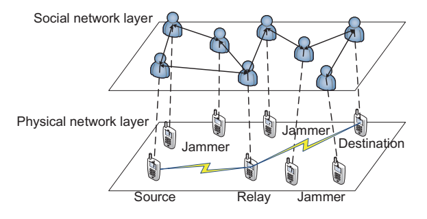 博士生肖叶秋的论文“Cooperative Jamming Strategy Based on Community Detection for Two-Hop Communication Networks”主要研究了社交关系对于物理层安全技术在无线网络中的影响问题。由于大量便携式无线设备已普遍出现于人们各类生活、生产等活动之中,无线网络呈现出社交网络特征。受此启发,本文基于社交关系对两跳无线通信系统的物理层安全信进行了研究,发现了不同团体间以及同一团体内不同用户的关系紧密程度会影响整体的通信安全,并基于以上发现提出了基于社团检测的协同干扰策略寻找纳什均衡状态下的最优安全性能及方案,实验证明所提出的策略可有效保障两跳通信系统的无线安全传输。