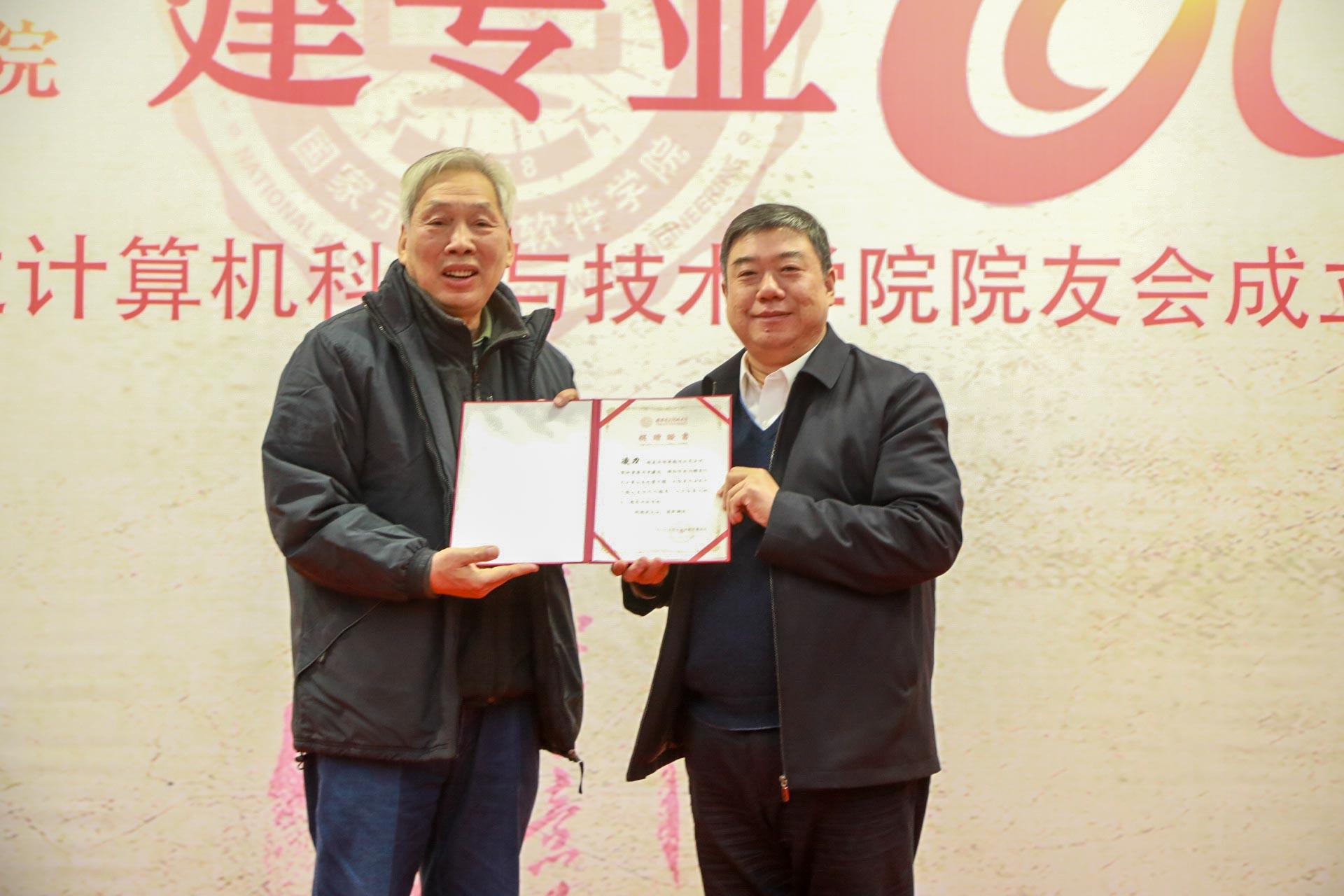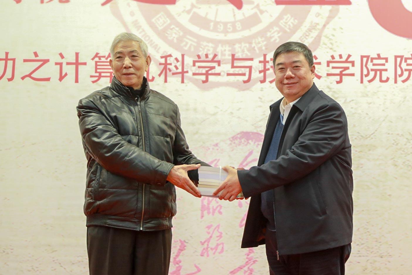 会议还举行了院友捐赠仪式。学院老教师周利华、徐学洲代表1957级校友朱保马向学校捐赠三件物品,包括102机插件、441-B机插件、Rockwell AIM65电脑。据介绍,102机是我国第一台军用数字计算机,1962年上级批准调至beat365供教学使用,是当时西北地区唯一一台电子计算机。441-B计算机是我国计算机由电子管向晶体管升级换代的晶体管计算机,beat365教师参与生产,1967年交付某海军基地使用,稳定运转近二十年。Rockwell AIM65电脑1978年研发成功,采用美国MOS Technology公司的6502处理器,可使用Pascal,FORTH语言进行编译。周利华老师代表1960级院友、茅盾文学奖获得者凌力向学校捐赠个人作品文集以及珍贵手稿。1959级院友徐宗昌向学校捐赠IETM技术与应用丛书一套、《IETM项目经理入门指南》一册。杨银堂为捐赠人颁发了捐赠证书。