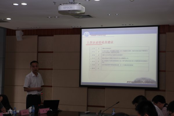 5月27日上午,现场考查见面汇报会在南校区行政楼602会议室召开,校党委常委、副校长李建东、教务处处长郭宝龙、副处长郭涛、毛立强,学生工作处副处长林松涛,计算机学院院长马建峰、党委书记于晓飞、副书记党文学、副院长王泉、崔江涛、王卫东及学院各系、中心、办公室负责人和计算机科学与技术专业部分骨干教师参加了会议。专家组组长周明陶主持会议,对这次工程教育认证的意义、目的、现场考查的程序等进行了说明。计算机科学与技术专业负责人王泉补充汇报了该专业建设的整体情况。相关负责人回答了专家组提出的人才培养、专业建设和办学情况等问题。