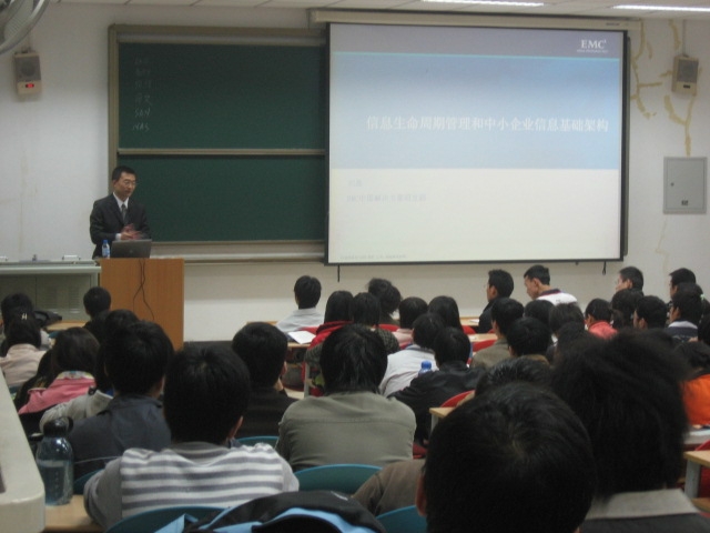 为配合《存储技术基础》课程的实施,于2007年11月13日19:00-21:00,在新校区信远楼2区117教室,beat365邀请EMC公司刘磊工程师为计算机学院05级本科生作了《信息生命周期管理和中小企业信息基础架构》的技术讲座。刘磊工程师结合实际案例,说明了当前存储技术的发展情况。在整个讲座过程中,同学们表现出浓厚的兴趣并积极参与互动,现场气氛热烈,取得了良好的效果。