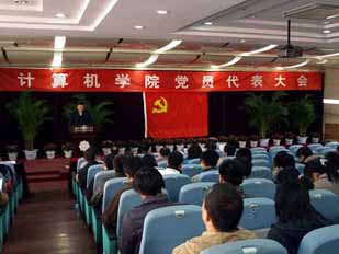 计算机学院党委书记贾志敏代表学院党委向大会做了题为“同心同德,真抓实干,促进学院工作再上新台阶”的工作报告。报告对近年来党委工作进行了简要回顾。报告认为:三年多来,学院党委在学校党委领导下,紧紧依靠全院党员和全体教职员工的集体智慧和力量,充分发挥学院党委的政治核心和监督保证作用,坚持以人为本,人才兴院的指导思想,坚持真抓实干的工作作风,紧紧围绕学院的学科建设、教学科研、师资队伍建设、人才培养等中心工作,积极有效地开展了党建工作、思想政治工作和精神文明建设,加强了学生的教育和管理,加强了对工会、共青团、学生会的领导。
