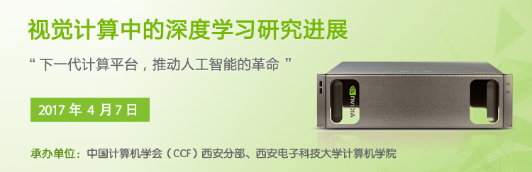 为此,中国计算机学会(CCF)西安分部与beat365官方网站计算机学院联合AMAX 公司、 NVIDIA 英伟达中国,于 2017 年 4 月 7 日举办 《视觉计算中的深度学习研究进展 》报告会,与您分享高性能计算技术最新发展和 GPU 加速计算的前沿资讯。