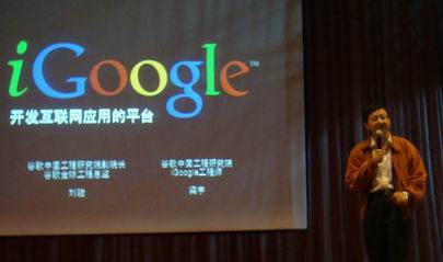 在演示环节中,igoogle的工程师梁宇先生首先为大家进行了igoogle页面演示,使大家了解了有关igoogle小工具作品参赛提交过程,对本次大赛的详细情况有了进一步的了解。接着,他介绍了igoogle的开发平台,包括小工具编辑器、开发小助手等。