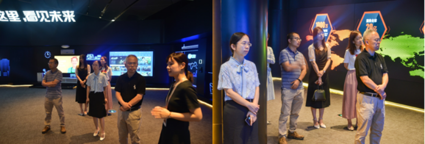 会后,在相关负责人的陪同下,学院一行参观了恒生电子现代化展厅,其中包括机构投资体验厅、技术体验区、个人投资理财体验区、专业投资体验区、历史体验区等。在参观过程中,对恒生电子的业务类型和人才需求有了更加深入的了解。