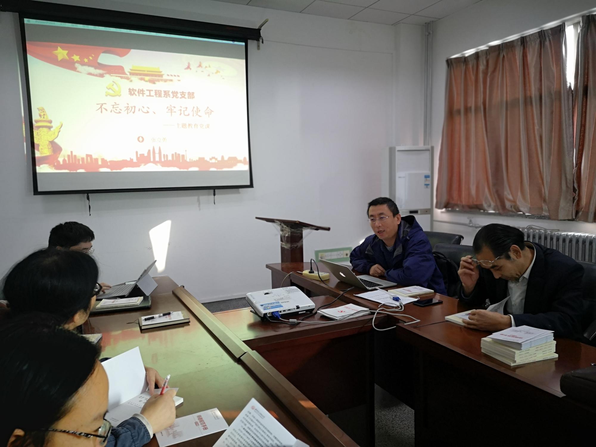 首先,张立勇进行了以“不忘初心、牢记使命”为主题的党课,重点为与会教师解读了第二批“不忘初心、牢记使命”主题教育的要求及实施方案。第二批“不忘初心、牢记使命”主题教育要围绕学习贯彻习近平新时代中国特色社会主义思想这条主线,引导党员、干部原原本本学,以理论滋养初心、以理论引领使命,增强“四个意识”、坚定“四个自信”、做到“两个维护”。要突出问题导向;聚焦主题主线;要统筹推进四项重点措施;要上下联动抓好专项整治。最后,张立勇介绍了学院以及软件工程系党支部关于开展“不忘初心、牢记使命”主题教育的工作方案和工作计划,并强调每位教师党员都应正确把握高校教师的初心和使命,加强理想信念,做合格党员,当好学生的“四个引路人”、做“四有”好老师。